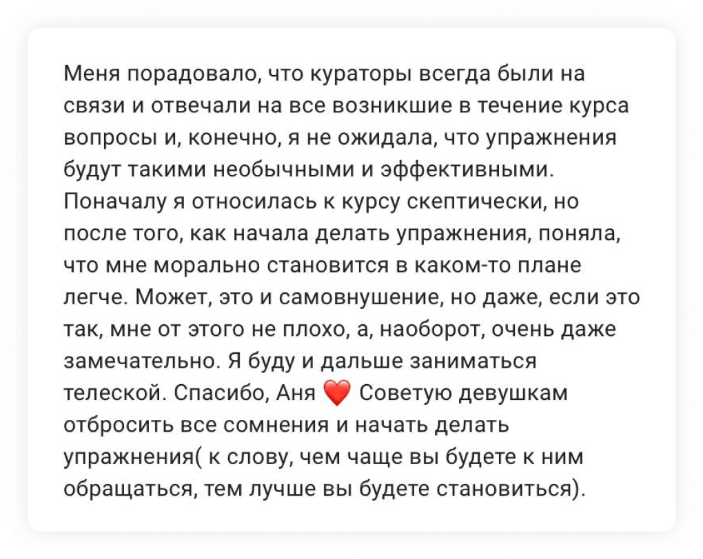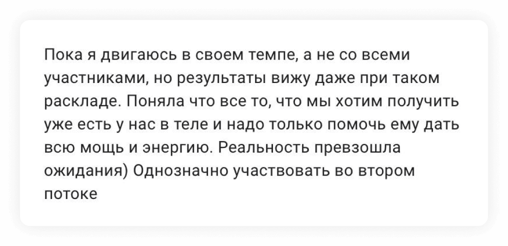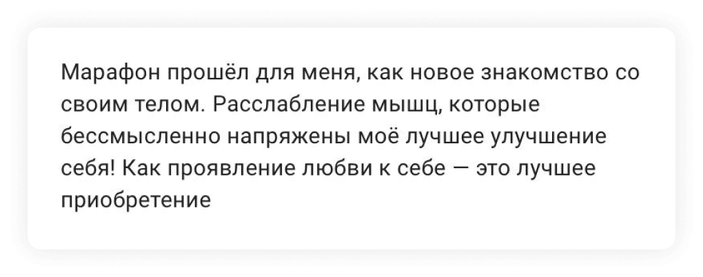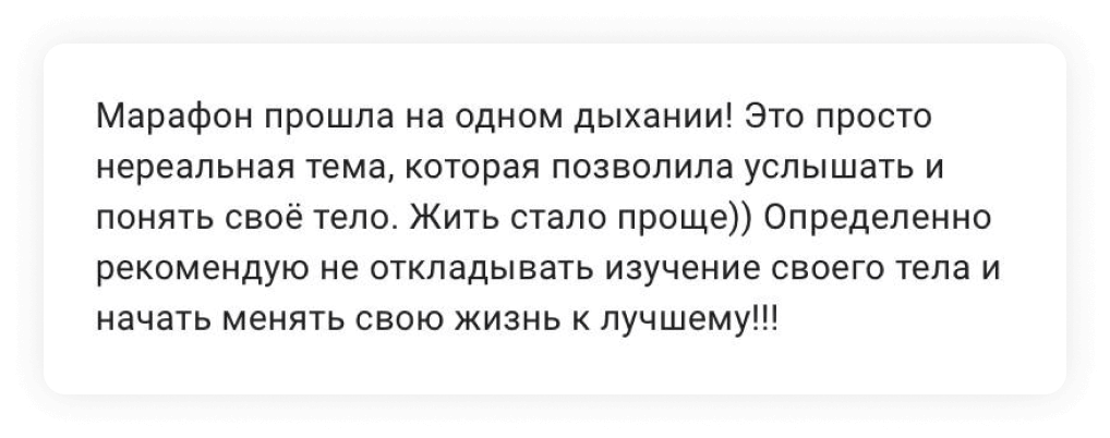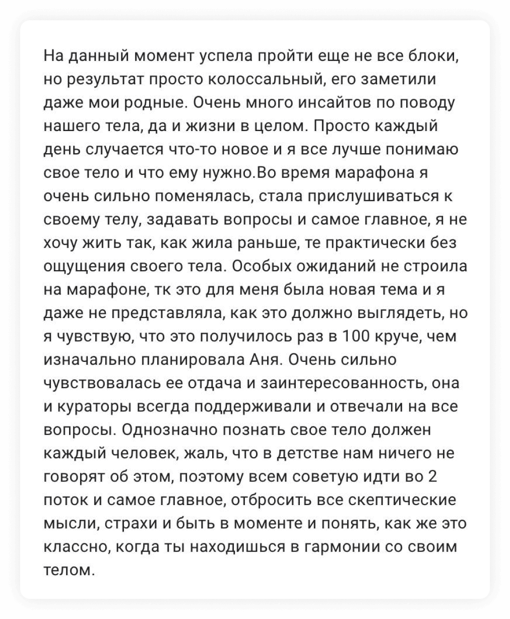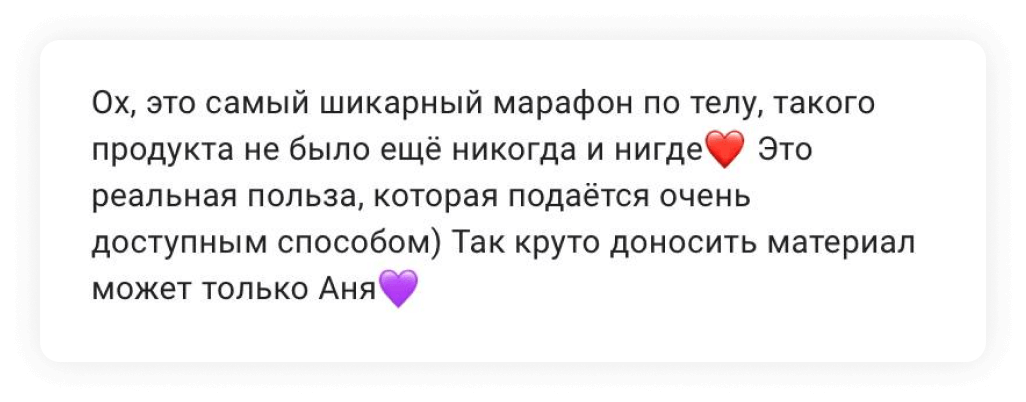 Которые будут выходить между уроками — они будут усиливать основную программу марафона так, чтобы вы сразу же видели эффект и получали результаты от работы со своим телом