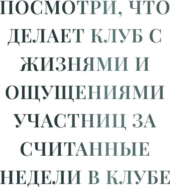 и ты поймёшь, как можно все равно следовать цели, даже если не ставить себя в дискомфорт надолго. Каждая встреча – это закрепление эффекта за неделю вместе с кураторами-наставниками в кругу подруг по всему миру